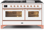 ILVE Majestic II 60" Dual Fuel Propane Gas Range in White with Copper Trim, UM15FDNS3WHPLP