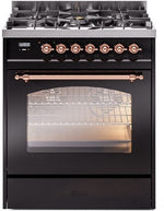 ILVE Nostalgie II 30" Dual Fuel Natural Gas Range in Black with Copper Trim, UP30NMPBKP