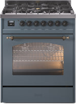 ILVE Nostalgie II 30" Dual Fuel Natural Gas Range in Blue Grey with Bronze Trim, UP30NMPBGB