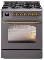 ILVE Nostalgie II 30" Dual Fuel Propane Gas Range in Matte Graphite with Brass Trim, UP30NMPMGGLP