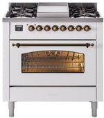 ILVE Nostalgie II 36" Dual Fuel Natural Gas Range in White with Bronze Trim, UP36FNMPWHB