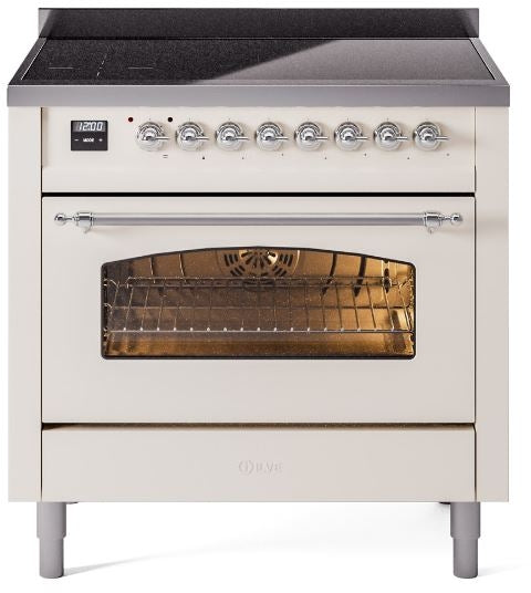 ILVE Nostalgie II 36" Induction Range with Element Stove and Electric Oven in Antique White with Chrome Trim, UPI366NMPAWC