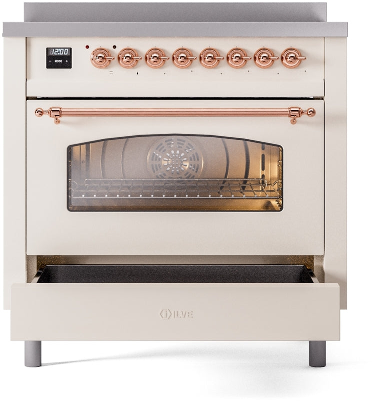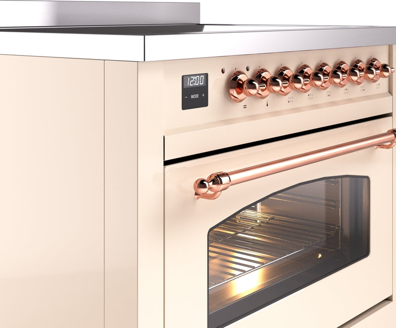 ILVE Nostalgie II 36" Induction Range with Element Stove and Electric Oven in Antique White with Copper Trim, UPI366NMPAWP
