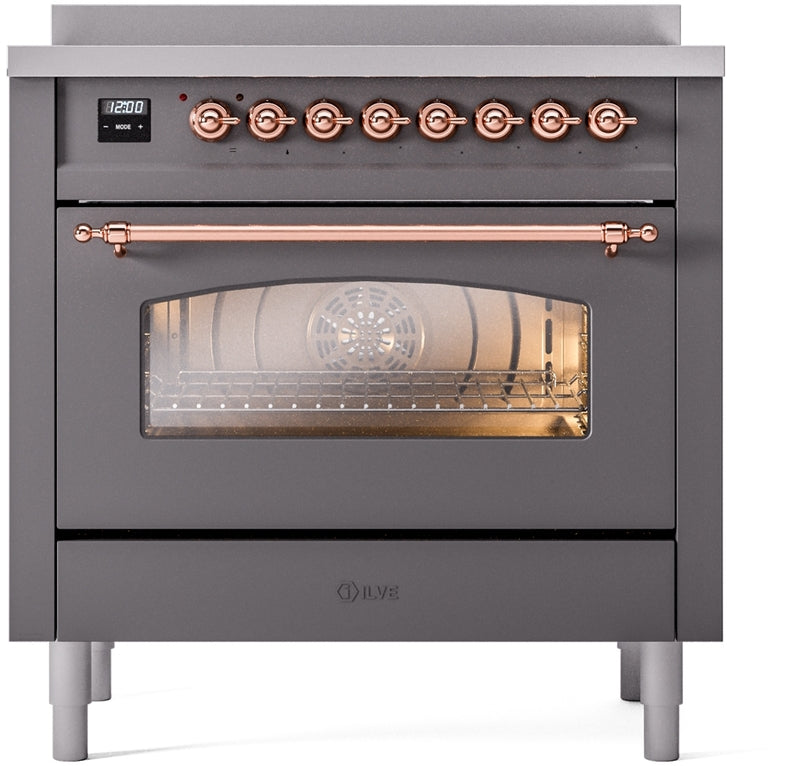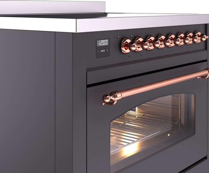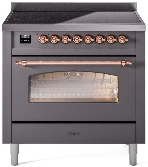 ILVE Nostalgie II 36" Induction Range with Element Stove and Electric Oven in Matte Graphite with Copper Trim, UPI366NMPMGP