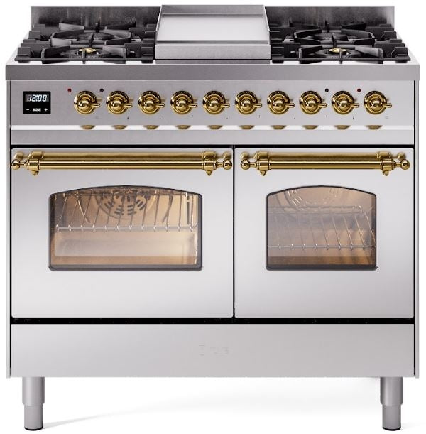 ILVE Nostalgie II 40" Dual Fuel Propane Gas Range in Stainless Steel with Brass Trim, UPD40FNMPSSGLP