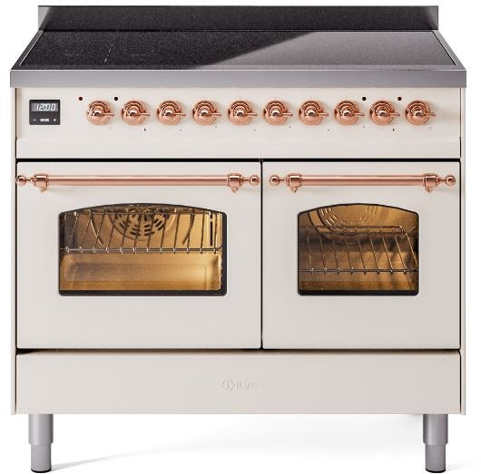 ILVE Nostalgie II 40" Induction Range with Element Stove and Electric Oven in Antique White with Copper Trim, UPDI406NMPAWP