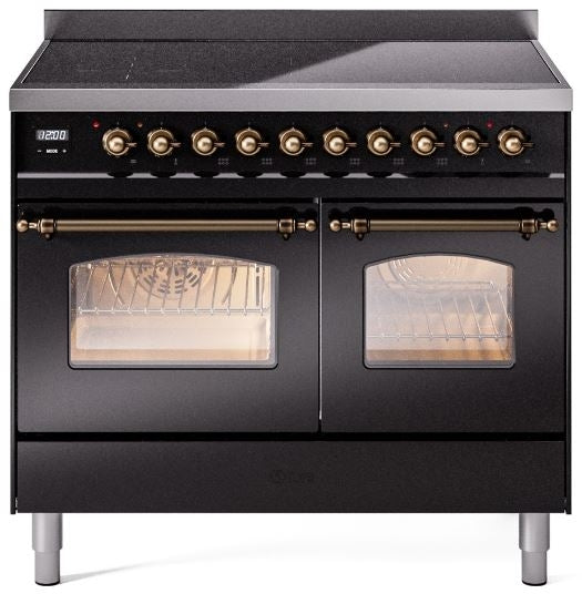 ILVE Nostalgie II 40" Induction Range with Element Stove and Electric Oven in Black with Bronze Trim, UPDI406NMPBKB