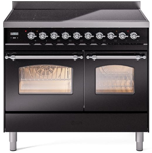 ILVE Nostalgie II 40" Induction Range with Element Stove and Electric Oven in Black with Chrome Trim, UPDI406NMPBKC