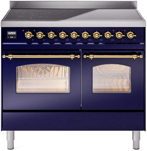 ILVE Nostalgie II 40" Induction Range with Element Stove and Electric Oven in Blue with Brass Trim, UPDI406NMPMBG