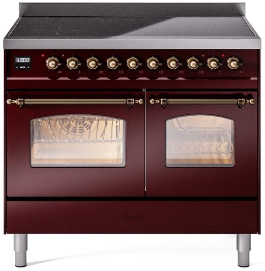 ILVE Nostalgie II 40" Induction Range with Element Stove and Electric Oven in Burgundy with Bronze Trim, UPDI406NMPBUB