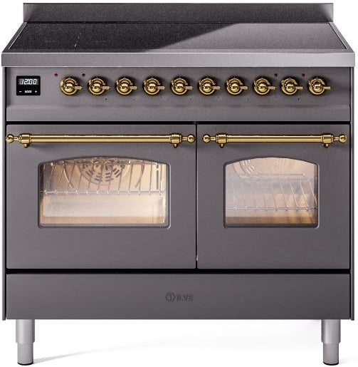 ILVE Nostalgie II 40" Induction Range with Element Stove and Electric Oven in Matte Graphite with Brass Trim, UPDI406NMPMGG