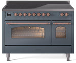 ILVE Nostalgie II 48" Induction Range with Element Stove and Electric Oven in Blue Grey with Copper Trim, UPI486NMPBGP