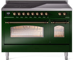 ILVE Nostalgie II 48" Induction Range with Element Stove and Electric Oven in Emerald Green with Bronze Trim, UPI486NMPEGB