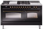 ILVE Nostalgie II 60" Dual Fuel Natural Gas Range in Glossy Black with Bronze Trim, UP60FSNMPBKB