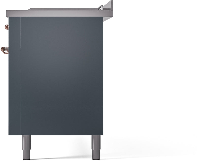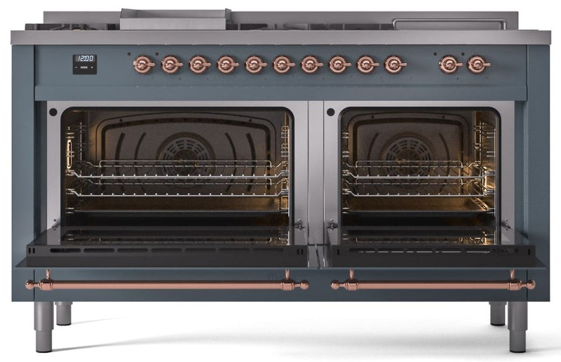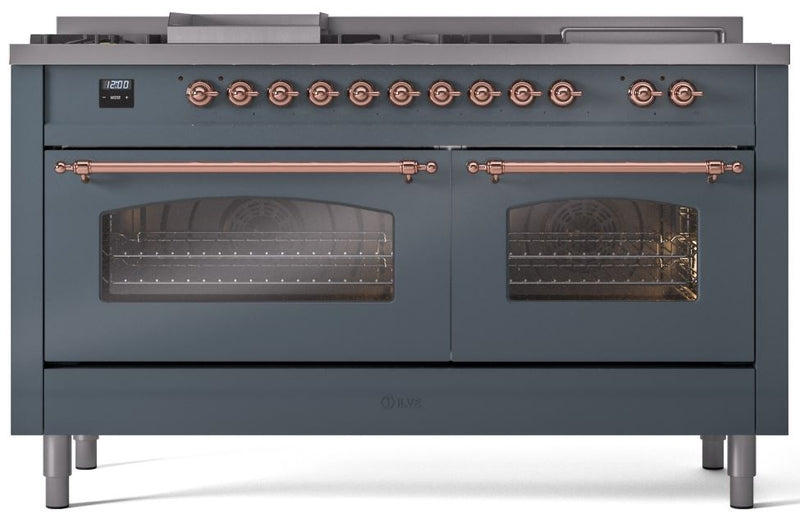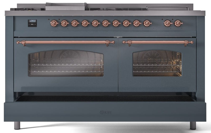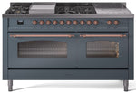 ILVE Nostalgie II 60" Dual Fuel Propane Gas Range in Blue Grey with Copper Trim, UP60FSNMPBGPLP