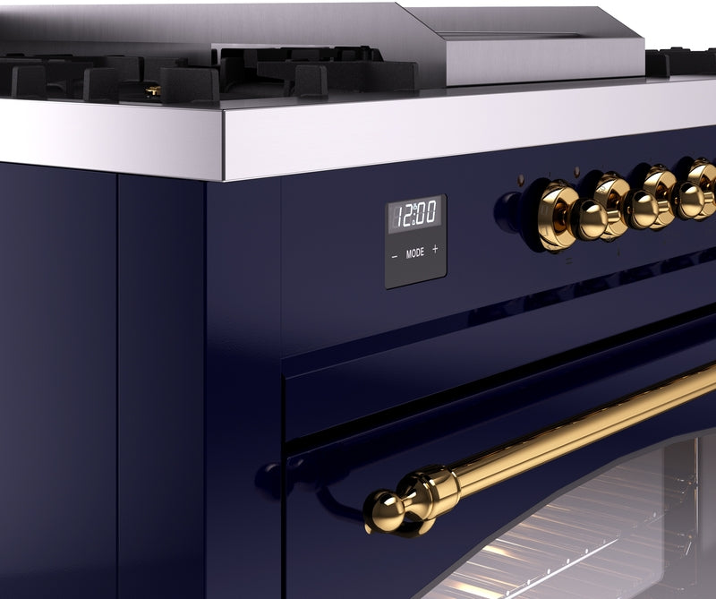 ILVE Nostalgie II 60" Dual Fuel Propane Gas Range in Blue with Brass Trim, UP60FSNMPMBGLP