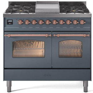 Vendor:ILVEILVE Nostalgie II 40" Dual Fuel Natural Gas Range in Blue Grey with Copper Trim, UPD40FNMPBGP