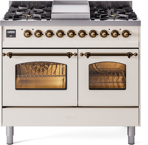 Vendor:ILVEILVE Nostalgie II 40" Dual Fuel Natural Gas Range in Antique White with Bronze Trim, UPD40FNMPAWB