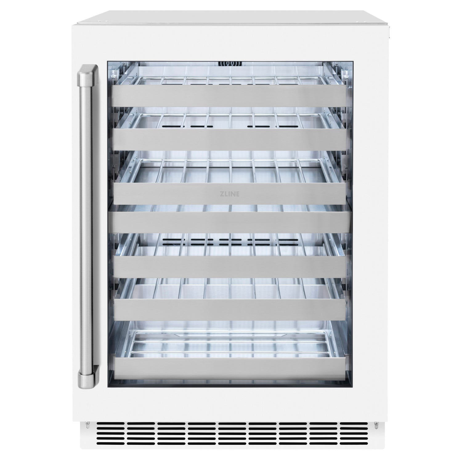 ZLINE 24" Touchstone Dual Zone 44 Bottle Wine Cooler with White Matte Glass Door, RWDO-WM-24