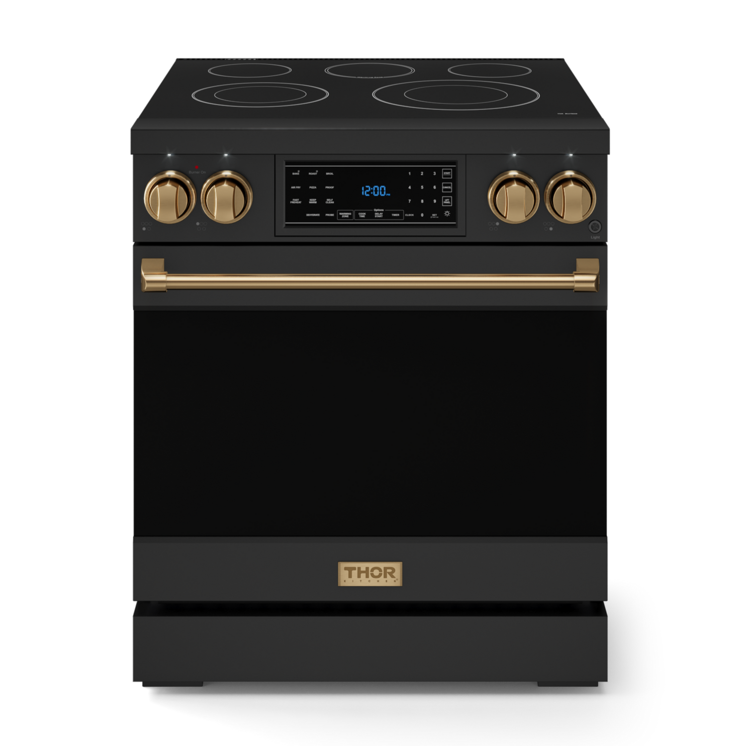 Gordon Ramsay by THOR Kitchen 30" 4.55 cu. ft. Professional Electric Range with Tilt Panel Touch Control, Self-Clean and Air Fry in Matte Black with Bronze Accents, RSE30B-BRZ