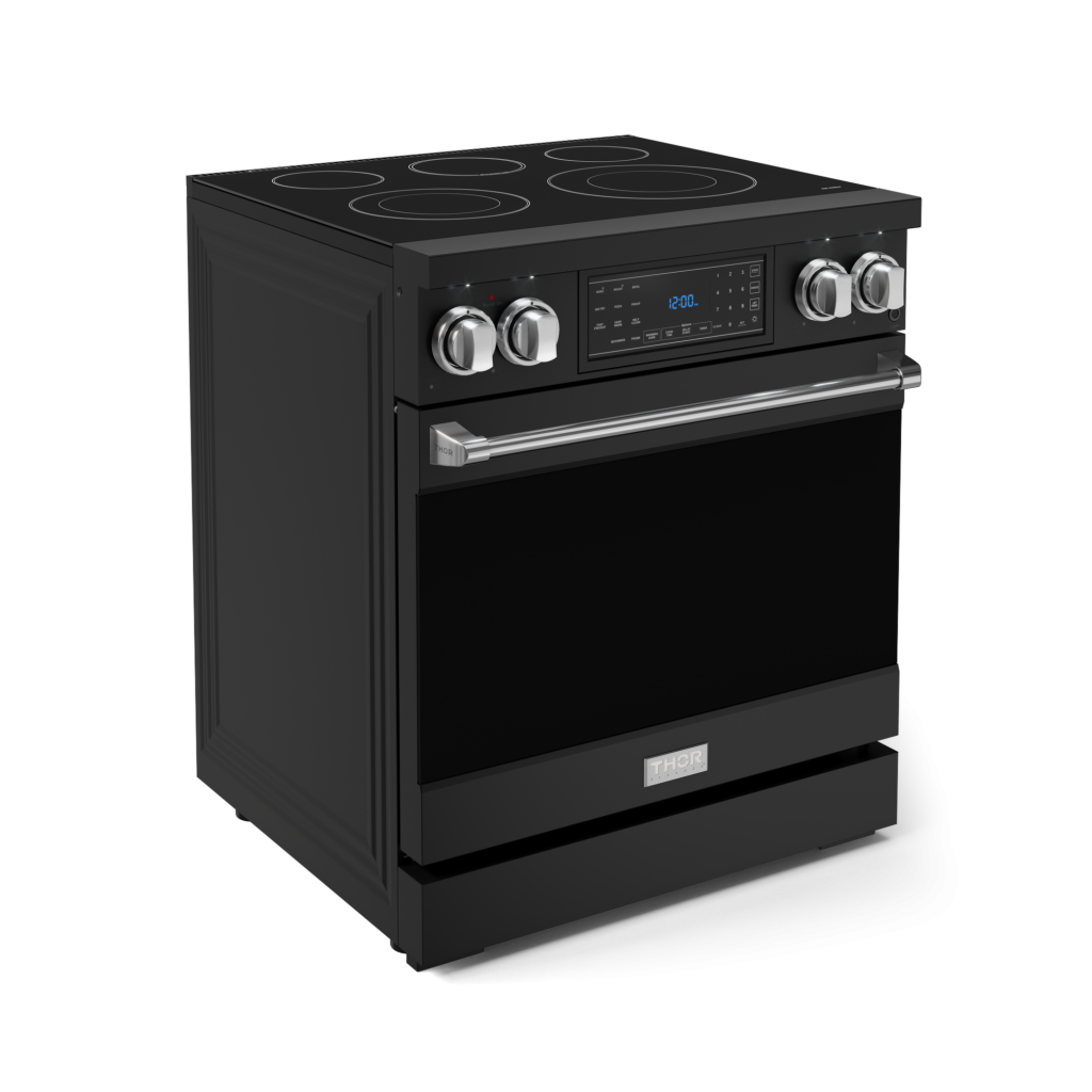Gordon Ramsay by THOR Kitchen 30" 4.55 cu. ft. Professional Electric Range with Tilt Panel Touch Control, Self-Clean and Air Fry in Matte Black with Stainless Steel Accents, RSE30B-SS