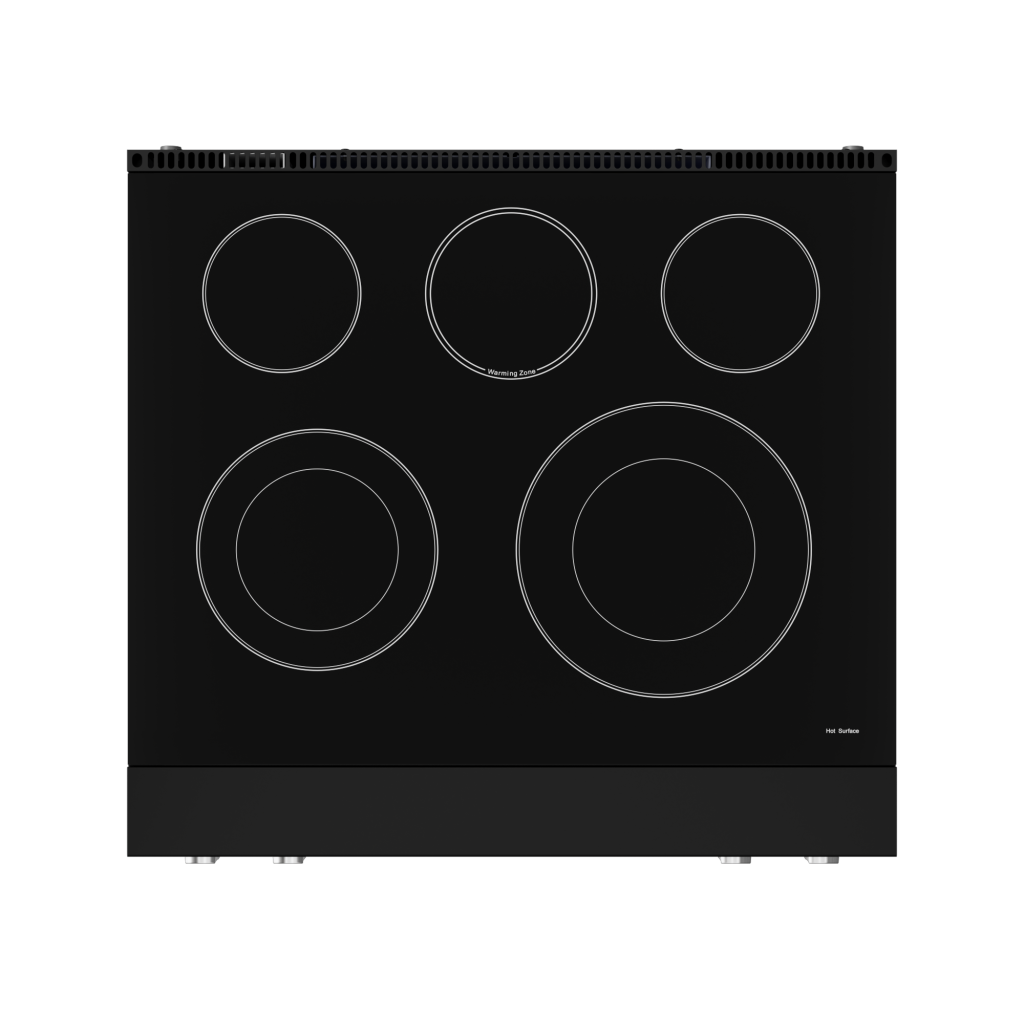 • Radiant Burners: Electric heating elements beneath a smooth ceramic glass surface provide even and consistent heat for flawless cooking results.