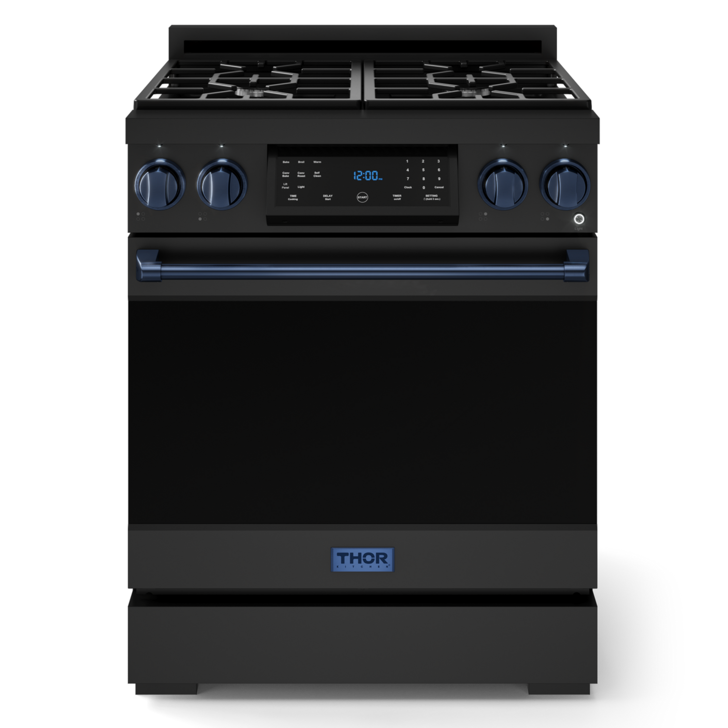Gordon Ramsay by THOR Kitchen 30" 4.55 cu. ft. Professional Natural Gas Range with Tilt Panel Touch Control and Self-Clean in Matte Black with Navy Blue Accents, RSG30B-BLU