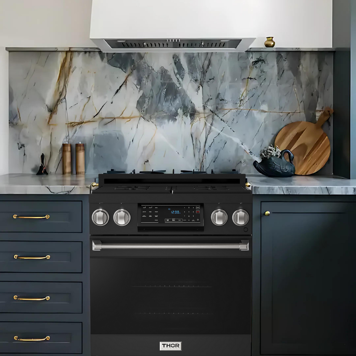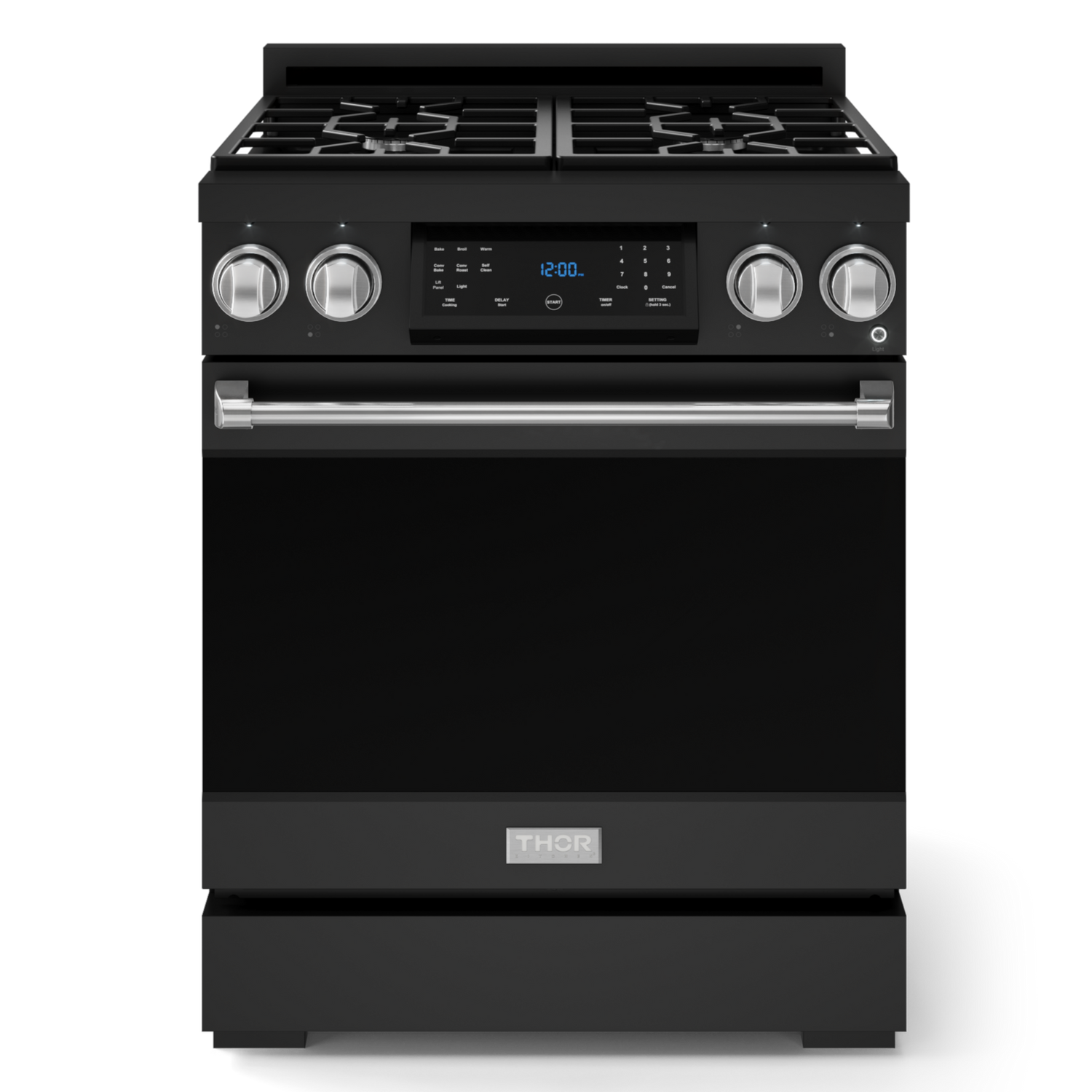 Gordon Ramsay by THOR Kitchen 30" 4.55 cu. ft. Professional Natural Gas Range with Tilt Panel Touch Control and Self-Clean in Matte Black with Stainless Steel Accents, RSG30B-SS