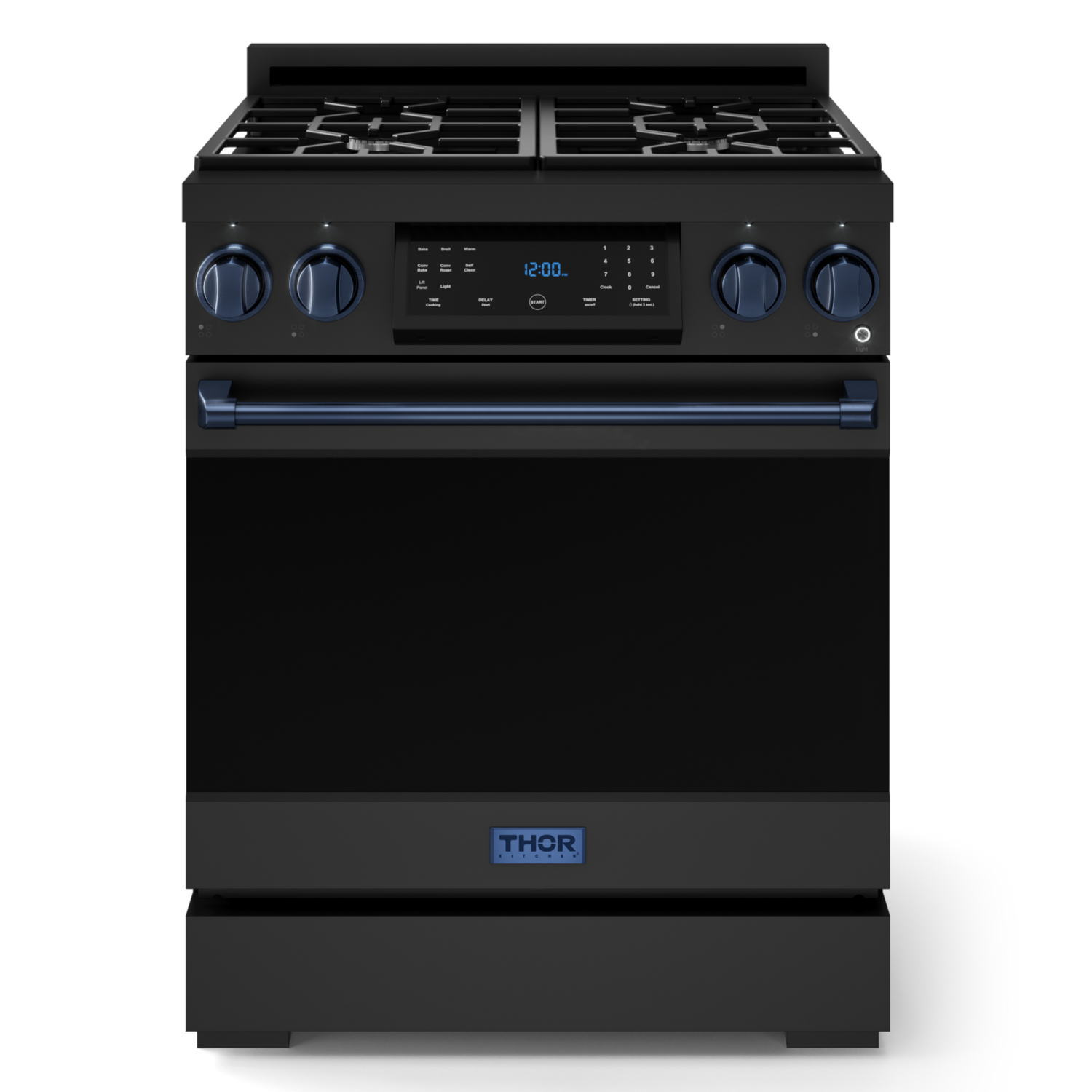 Gordon Ramsay by THOR Kitchen 30" 4.55 cu. ft. Professional Propane Gas Range with Tilt Panel Touch Control and Self-Clean in Matte Black with Navy Blue Accents, RSG30BLP-BLU