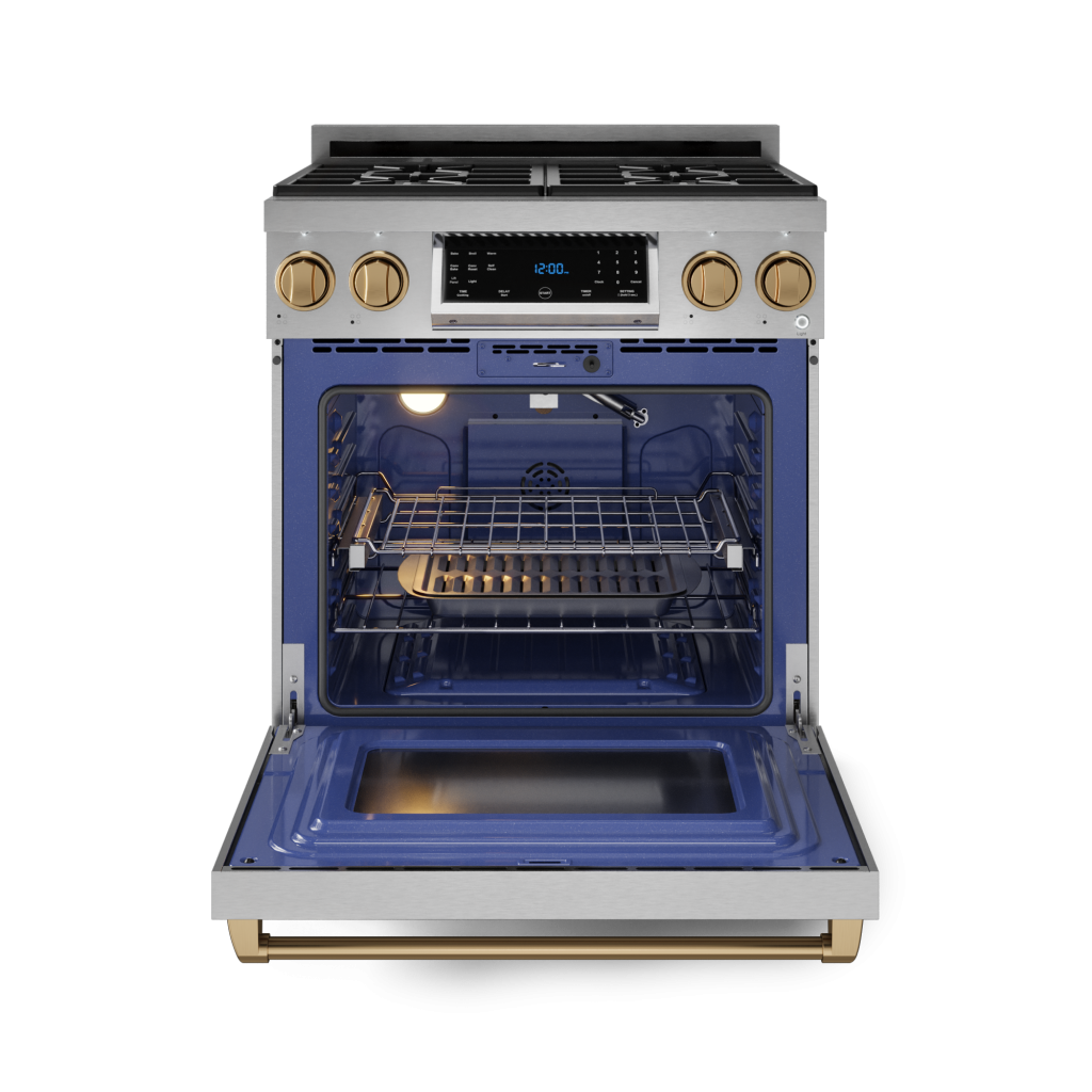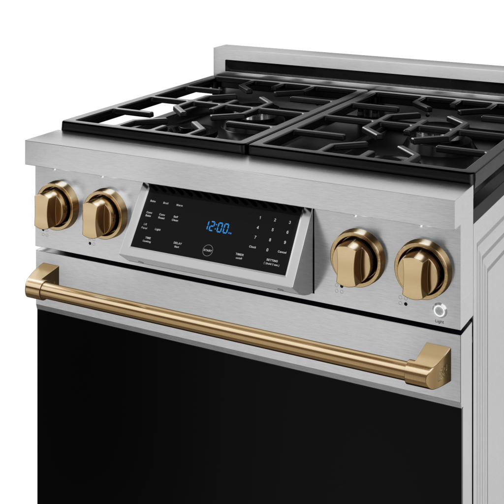 Gordon Ramsay by THOR Kitchen 30" 4.55 cu. ft. Professional Propane Gas Range with Tilt Panel Touch Control and Self-Clean in Stainless Steel with Bronze Accents, RSG30LP-BRZ