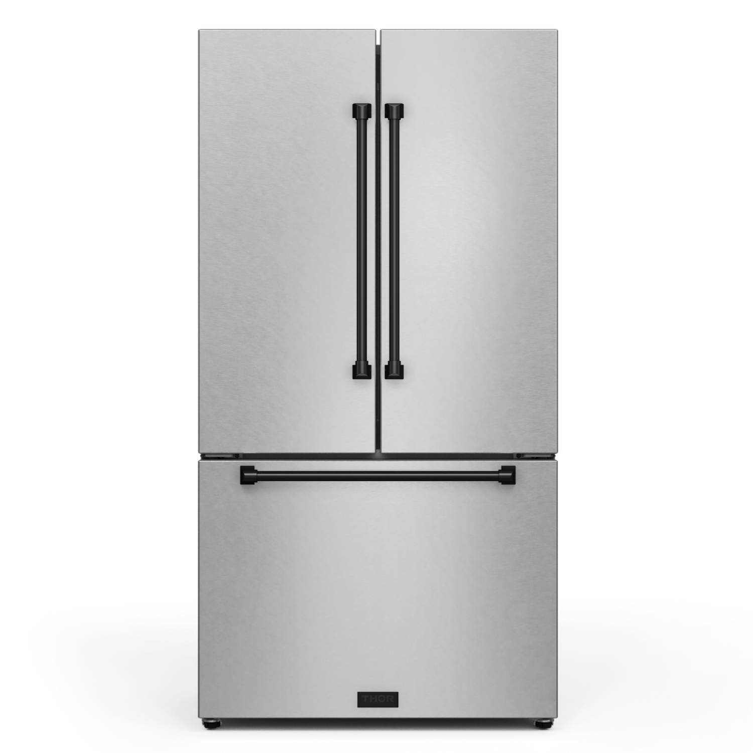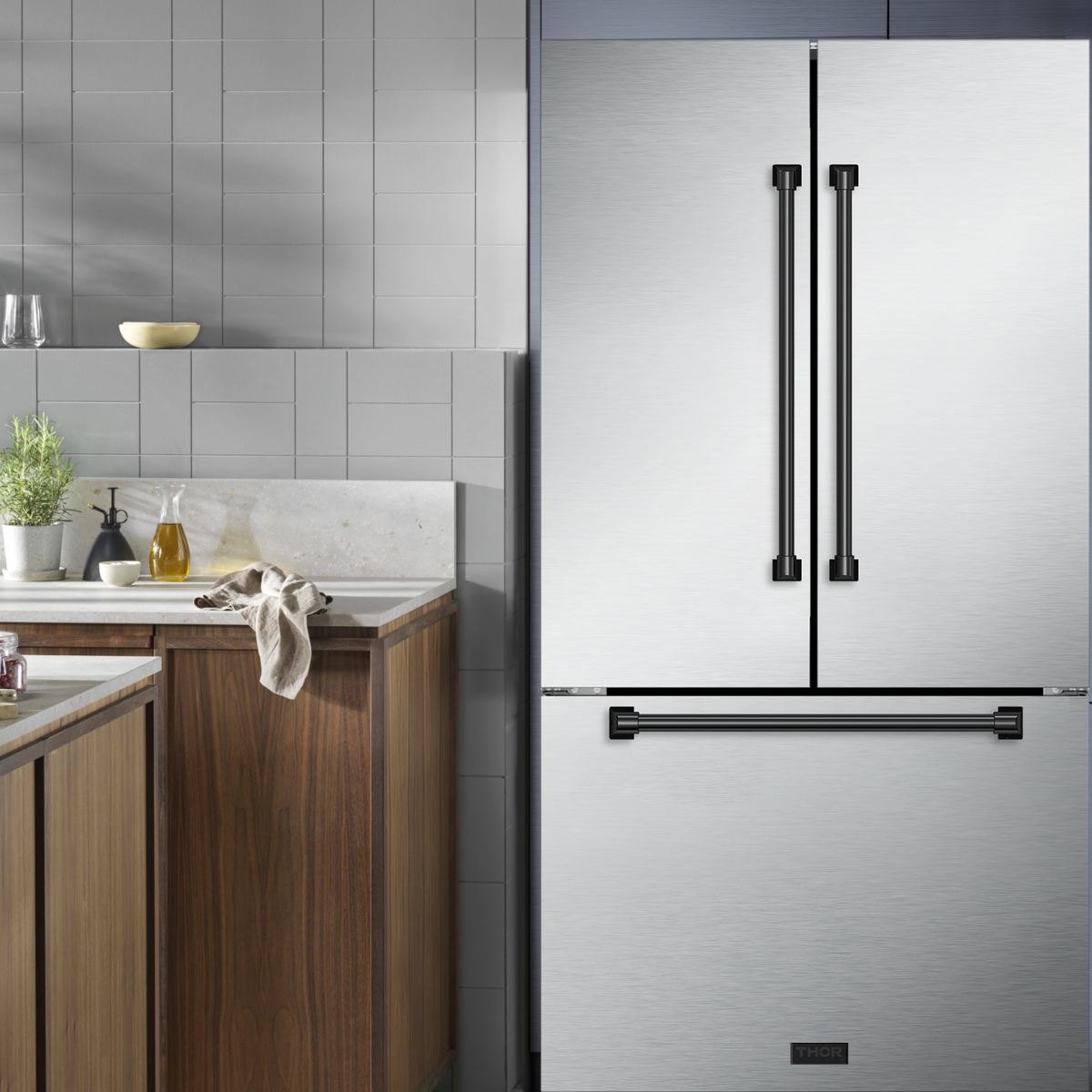 Gordon Ramsay by THOR Kitchen 36" 20.3 cu. ft. French Door Counter Depth Refrigerator with Ice Maker in Stainless Steel with Black Accents, RF3621CTD99-BLK