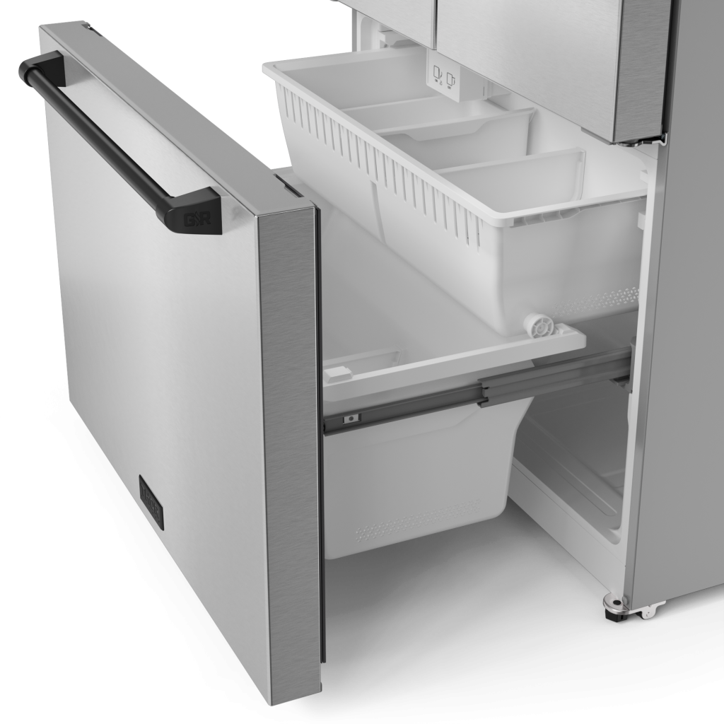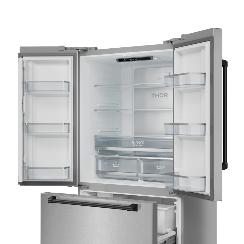 Experience the perfect balance of performance and design with the 36" 20.3 cu. ft. French Door Counter Depth Refrigerator from the Gordon Ramsay by Thor Kitchen Collection. Combining advanced cooling technology with spacious, customizable interiors, this refrigerator ensures your ingredients stay fresher for longer, while adding a touch of elegance to your kitchen.