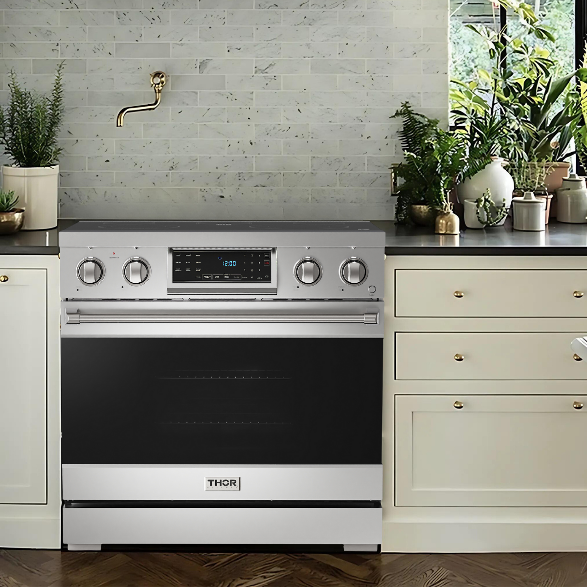 Designed for top-tier performance, the 36" Professional Electric Range from the Gordon Ramsay by Thor Kitchen Collection delivers exceptional precision and power. With high-performance burners, even heat distribution, and user-friendly controls, this range brings restaurant-quality cooking to your home, elevating every meal.