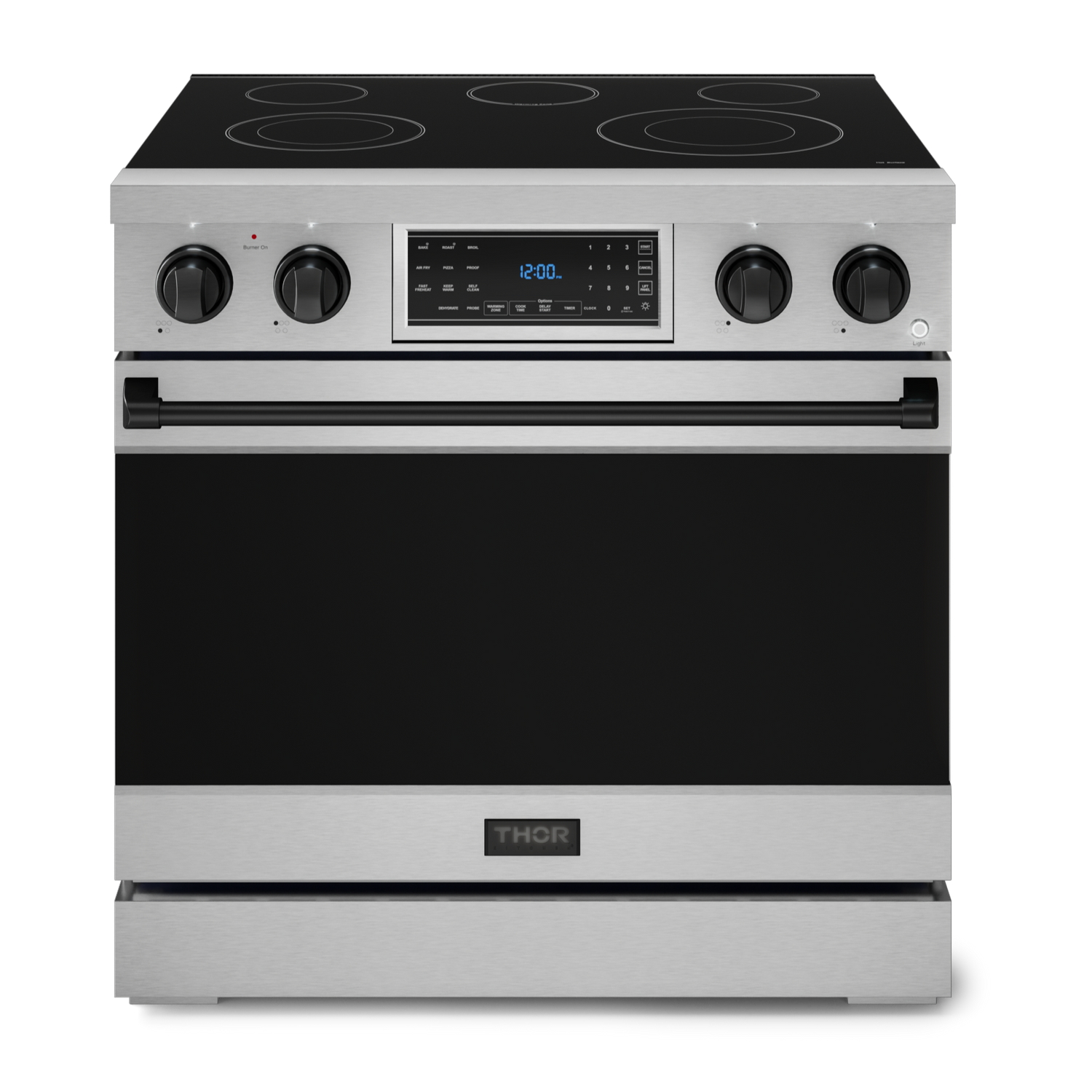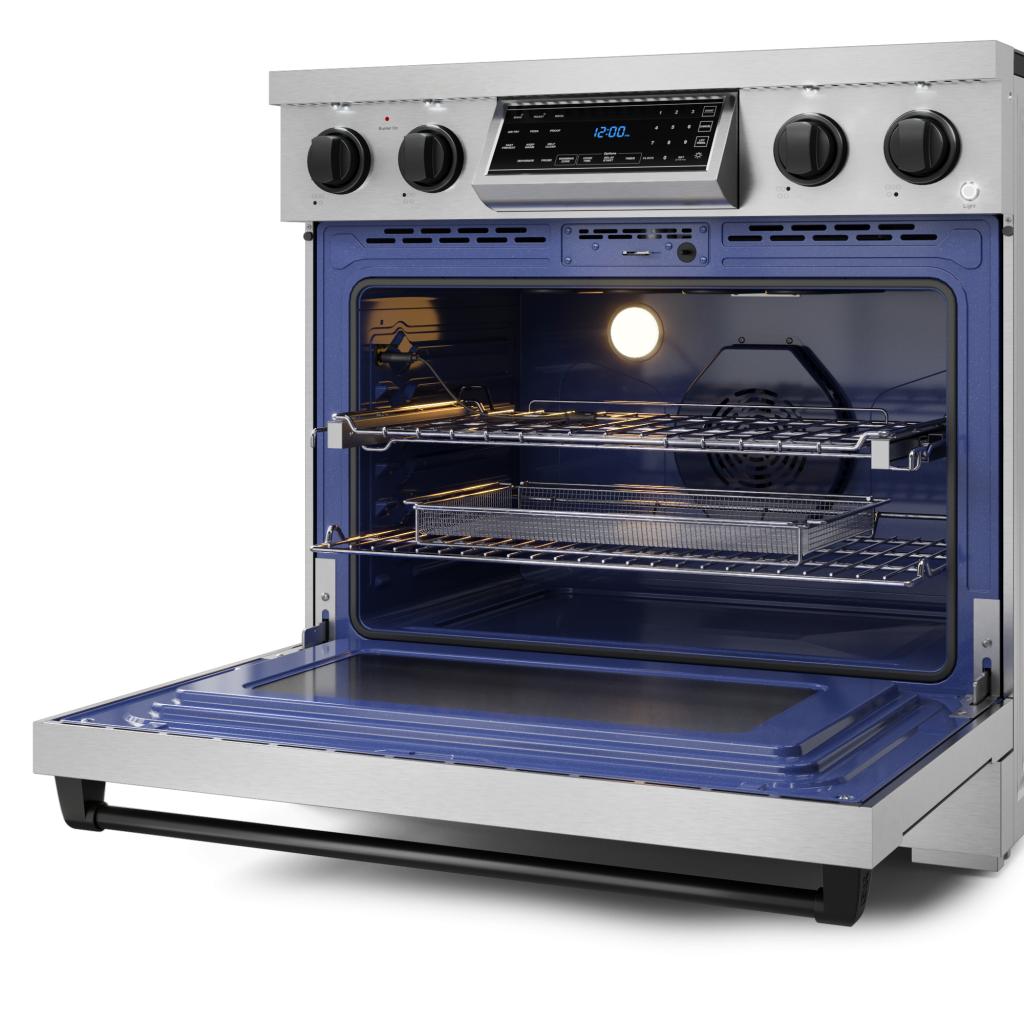 Gordon Ramsay by THOR Kitchen 36" 6.0 cu. ft. Professional Electric Range with Tilt Panel Touch Control, Self-Clean and Air Fry in Stainless Steel with Black Accents, RSE36-BLK