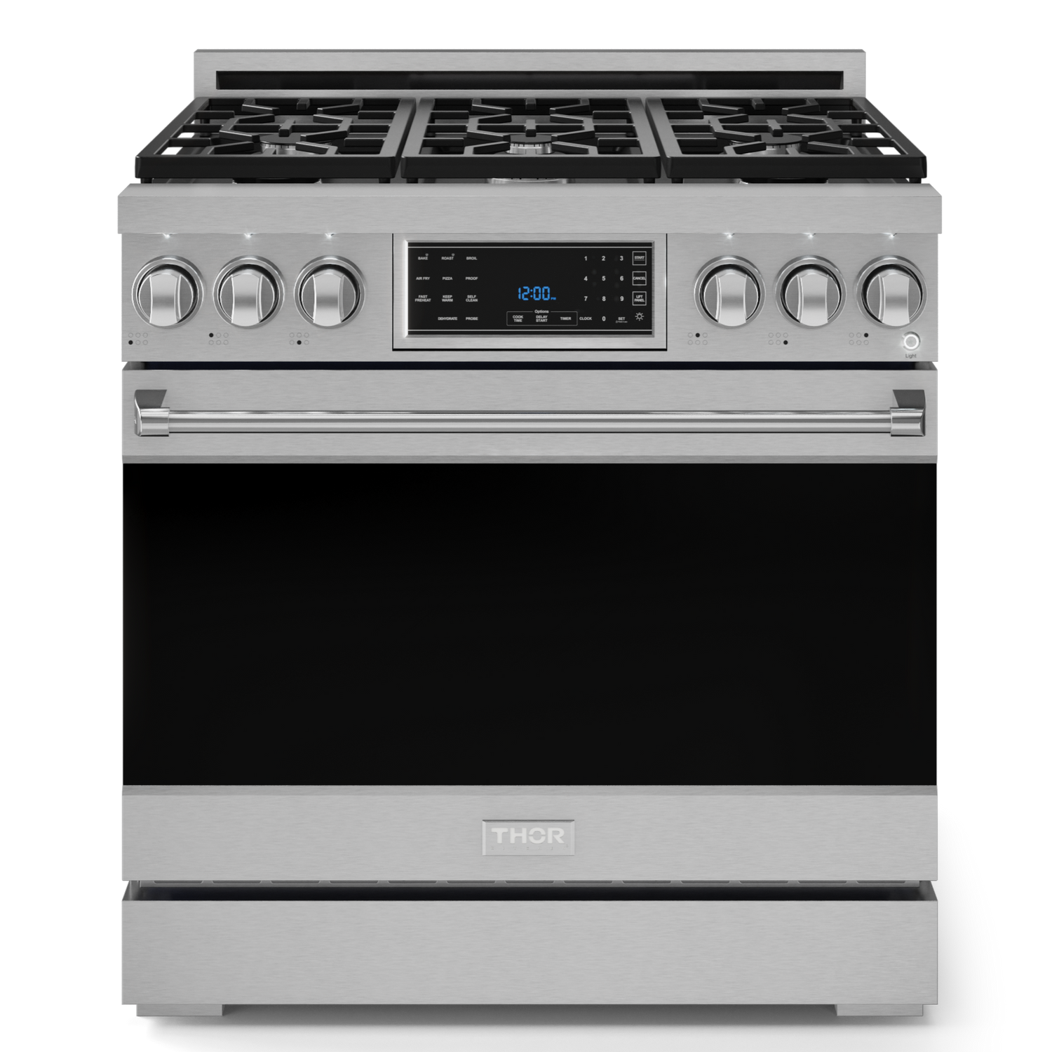 Gordon Ramsay by THOR Kitchen 36" 6.0 cu. ft. Professional Natural Gas Range with Tilt Panel Touch Control, Self-Clean and Air Fry in Stainless Steel, RSG36