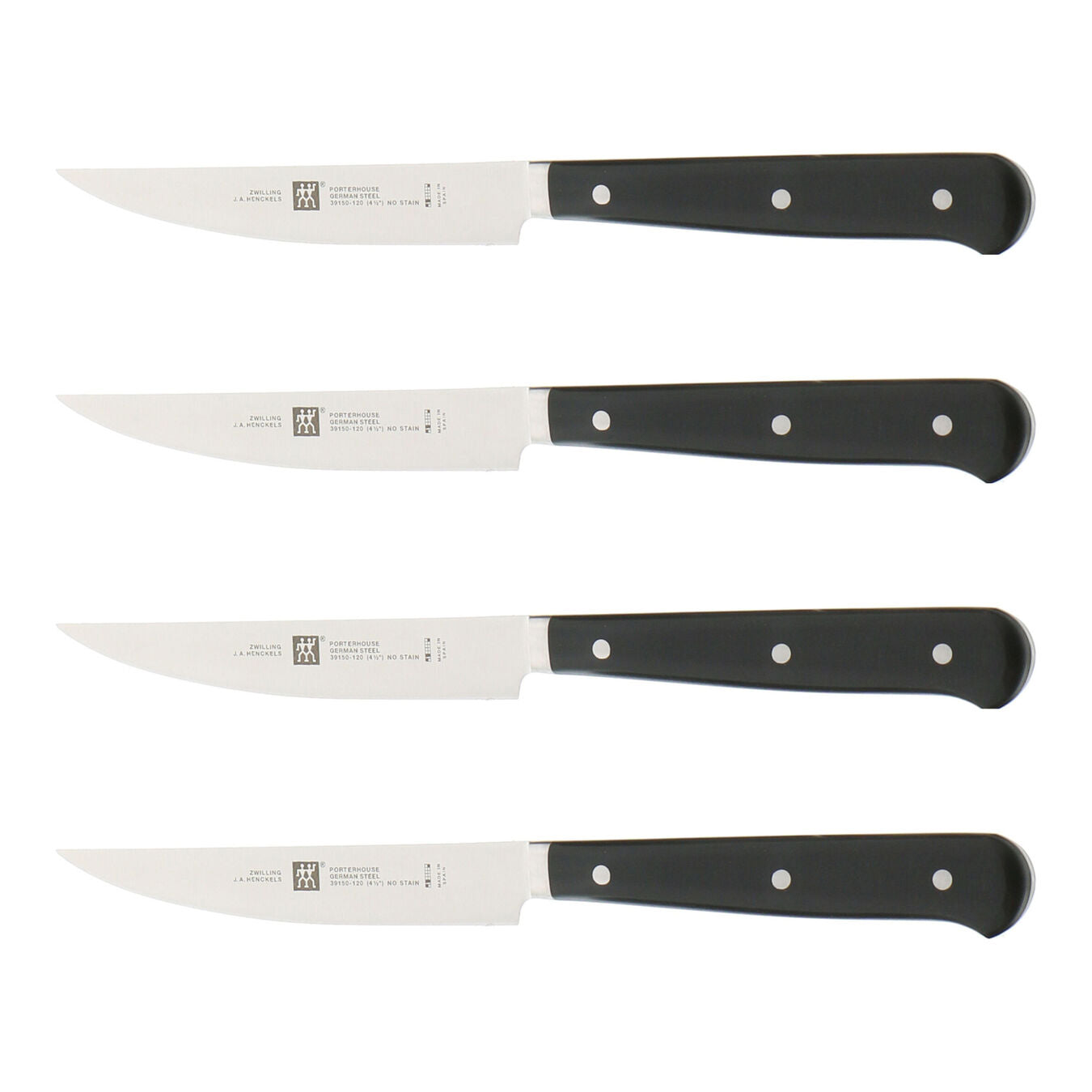 Since 1731, cutlery by ZWILLING J.A. Henckels cutlery has been recognized worldwide as a symbol of quality, innovation and design.Crafted with over 280 years of knife-making expertise, ZWILLING Porterhouse is the benchmark for steak knives. Precision-forged from a single piece of special formula stainless steel, the strong, ice-hardened blades boast long-lasting sharpness. From Porterhouse to tri-tip, these durable knives effortlessly slice through even the thickest cuts of meat.Their full tang provides the balance needed to cleanly slice through steak while the firm, ergonomic handles ensure fatigue-free cutting. Inspired by Italian architect Matteo Thun, the knives are stored in a beechwood storage box that handsomely protects the blades. Whenever meat is on the menu, you'll want to reach for these exceptional knives.