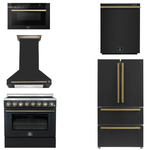 FORNO Appliance Package - 36" Electric Range, Range Hood, 36" Refrigerator, Dishwasher, Microwave in Black with Antique Brass Accents