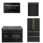 FORNO Appliance Package - 48" Electric Range, 36" Refrigerator, Dishwasher, Microwave in Black with Antique Brass Accents