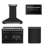 FORNO Appliance Package - 48" Electric Range, Range Hood, Dishwasher, Microwave in Black with Antique Brass Accents