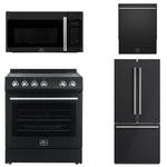 FORNO Espresso Package - 30" Electric Range, Over-The-Range Microwave, 30" Refrigerator with Ice Maker and Dishwasher in Black with Silver Accents, AP4-6012BLK-S13