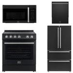 FORNO Espresso Package - 30" Electric Range, Over-The-Range Microwave, 36" Refrigerator with Ice Maker and Dishwasher in Black with Silver Accents, AP4-6012BLK-S12