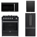 FORNO Espresso Package - 30" Gas Range, Over-The-Range Microwave, 30" Refrigerator with Ice Maker and Dishwasher in Black with Silver Accents, AP4-1116BLK-S13