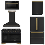 FORNO Espresso Package - 48" Gas Range, Range Hood, 36" Refrigerator, Dishwasher, Microwave in Black with Antique Brass Accents
