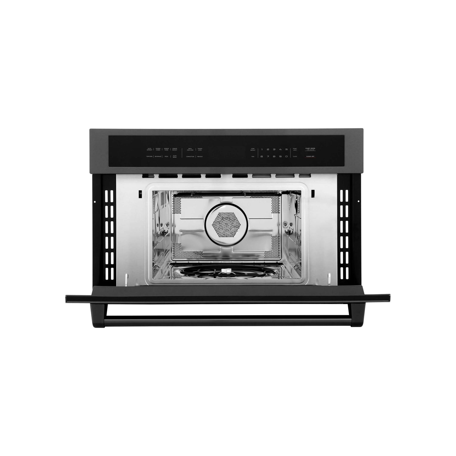 ZLINE 4-Piece Appliance Package - 30 In. Rangetop, Wall Oven, Refrigerator, and Microwave Oven in Black Stainless Steel, 4KPR-RTB30-MWAWS