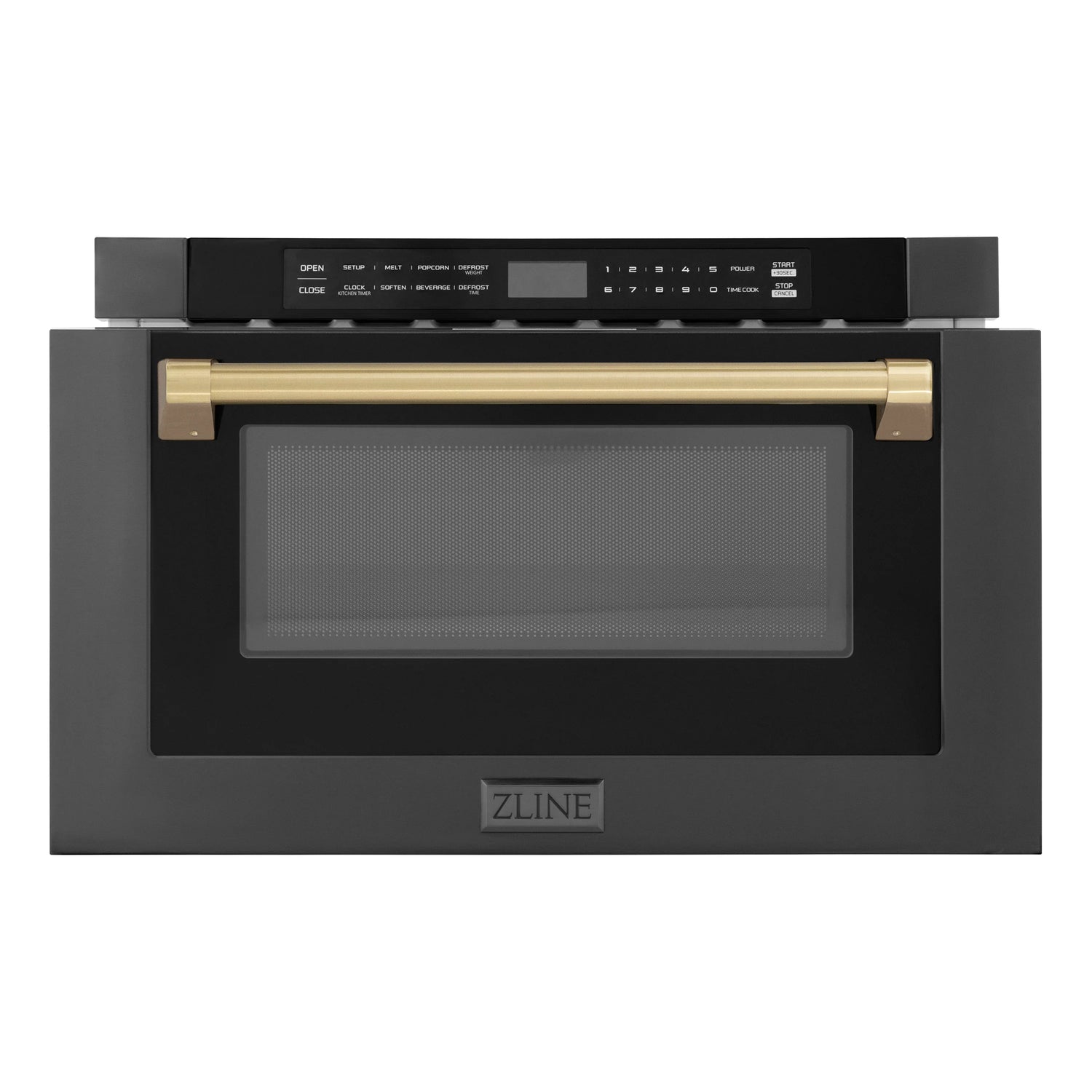 Experience everyday convenience in luxurious style with the ZLINE Autograph Edition 24" 1.2 cu. ft. Built-in Microwave Drawer. Expertly designed with black stainless steel and champagne bronze accents, this stylish piece offers the ultimate in modern sophistication for your kitchen. Enjoy optimum culinary convenience with the sleek, cutting-edge features of the ZLINE Autograph Edition.