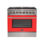 FORNO Galiano 36" 5.36 cu. ft. Dual Fuel Range with 6 Italian Burners in Red, FFSGS6156-36RED