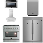 FORNO Package - 36 Inch Gas Range, Wall Mount Range Hood, Refrigerator, Microwave Drawer, Dishwasher, AP-FFSGS6244-36-W-8