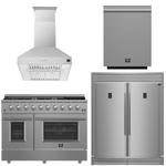 FORNO Appliance Package - 48" Gas Range, Range Hood, 60" Refrigerator, Dishwasher, AP-FFSGS6244-48-20