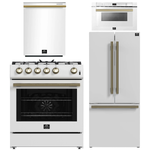 FORNO Espresso Package - 30" Gas Range, 30" Refrigerator with Ice Maker, Dishwasher and 24" Microwave Drawer in White with Antique Brass Accents