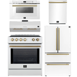 FORNO Espresso Package - 30" Induction Range, Range Hood, 36" Refrigerator with Ice Maker, Dishwasher and 24" Microwave Drawer in White with Antique Brass Accents